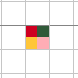 The 1/4 cross stitch tool is used to add up to 4 colours per grid square. The printed chart will show each colour as a smaller symbol in the four corners of the square.